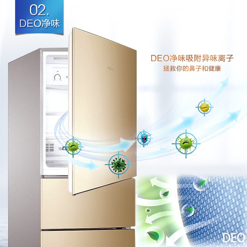 Haier Haier BCD-216WMPT Haier air-cooled frost-free refrigerator 216 liters three-door soft frozen flavor refrigerator