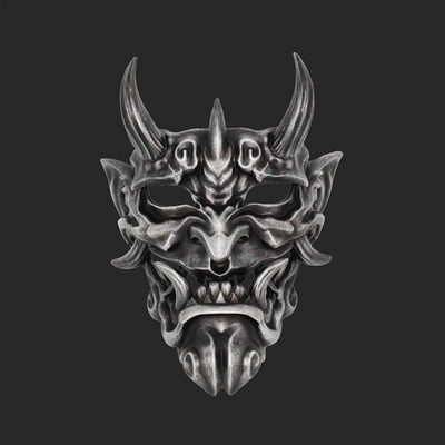 Japanese samurai mask full face cos red Prajna grimace fangs devil hood male costume handsome mask resin