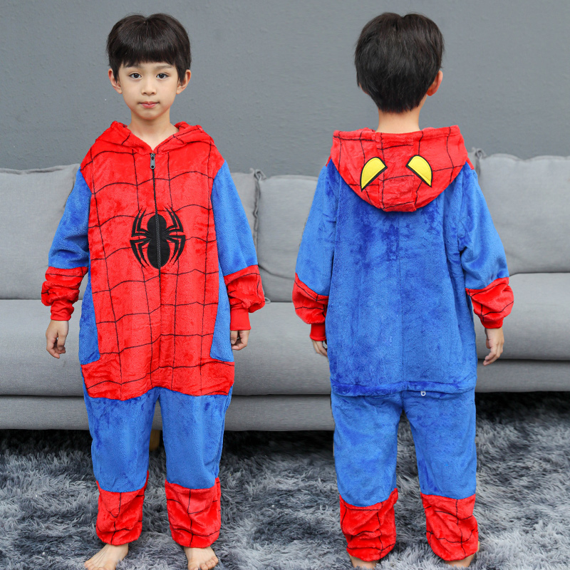 Children's pajamas boys flannel plus velvet thickened autumn and winter coral velvet cute spiderman home clothes jumpsuit