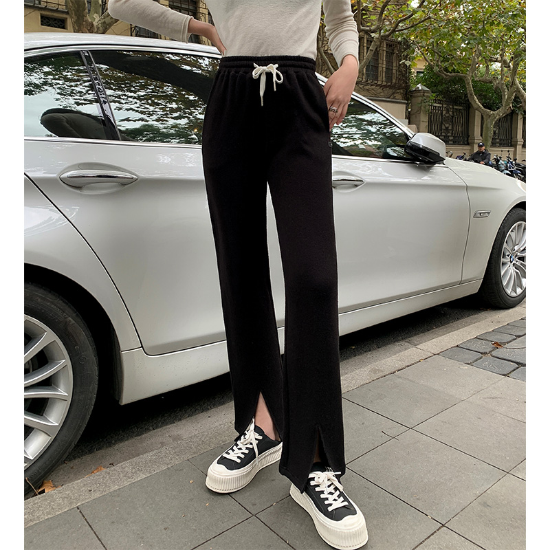 (TWO LEMON High Street Pants) 2022 Spring High Waist Thin Vertical Straight Slit Casual Sports Pants Women