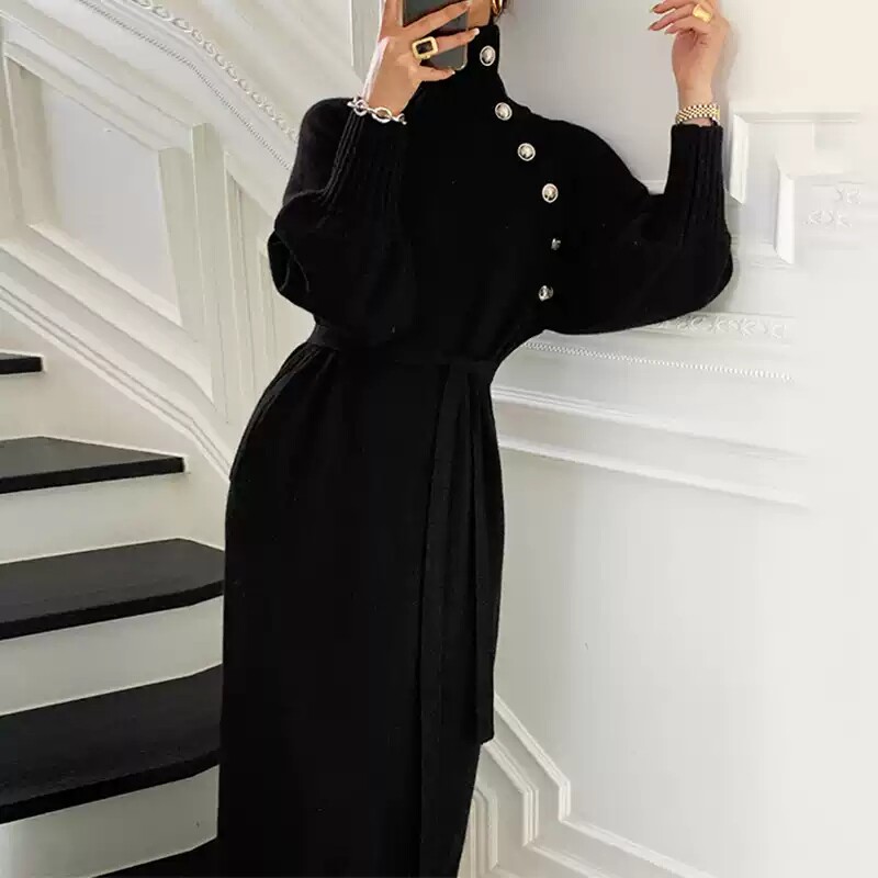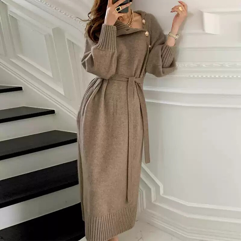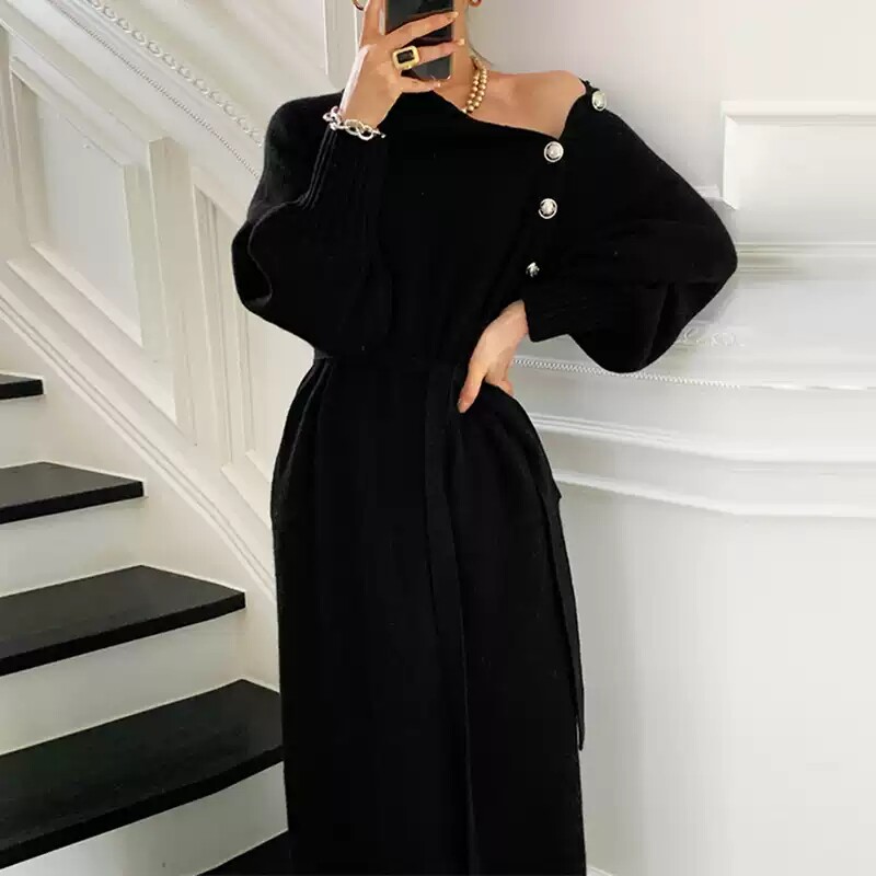 2021 new French coat long sweater skirt small fragrance wind with base knitted dress children autumn and winter