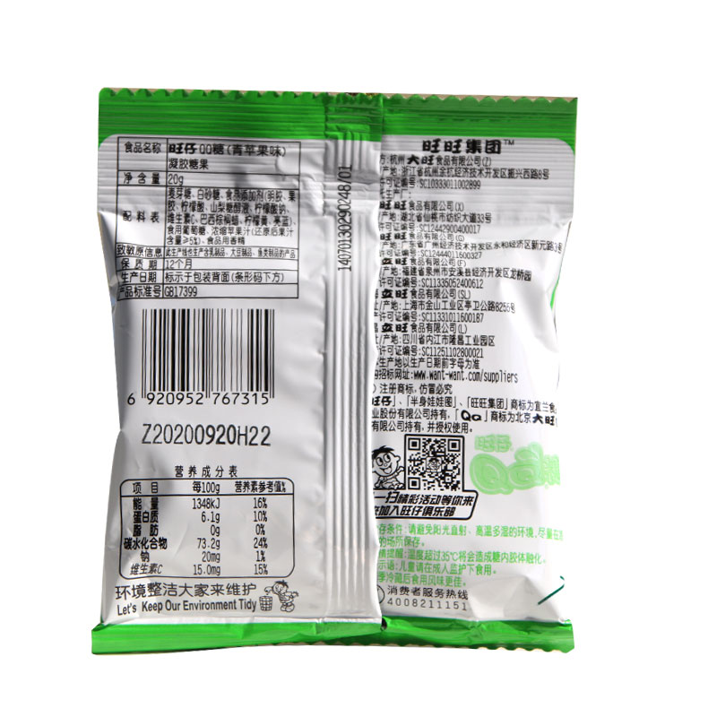 Wanzai QQ Sugar 20g * 120 Packs Whole Box Juice Soft Sugar Water Honey Peach Cola Lychee Taste Rubber Net Red Snacks