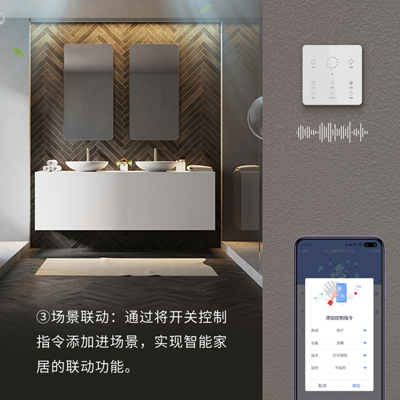 Intelligent voice bath master switch panel touch five open four open universal wiring free toilet wireless air heating waterproof