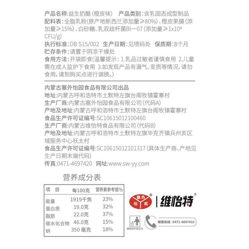 Saiwai Yiyuan Probiotic cheese Fruit cheese milk blocks Dry cheese blocks Dairy products Goku high protein snacks