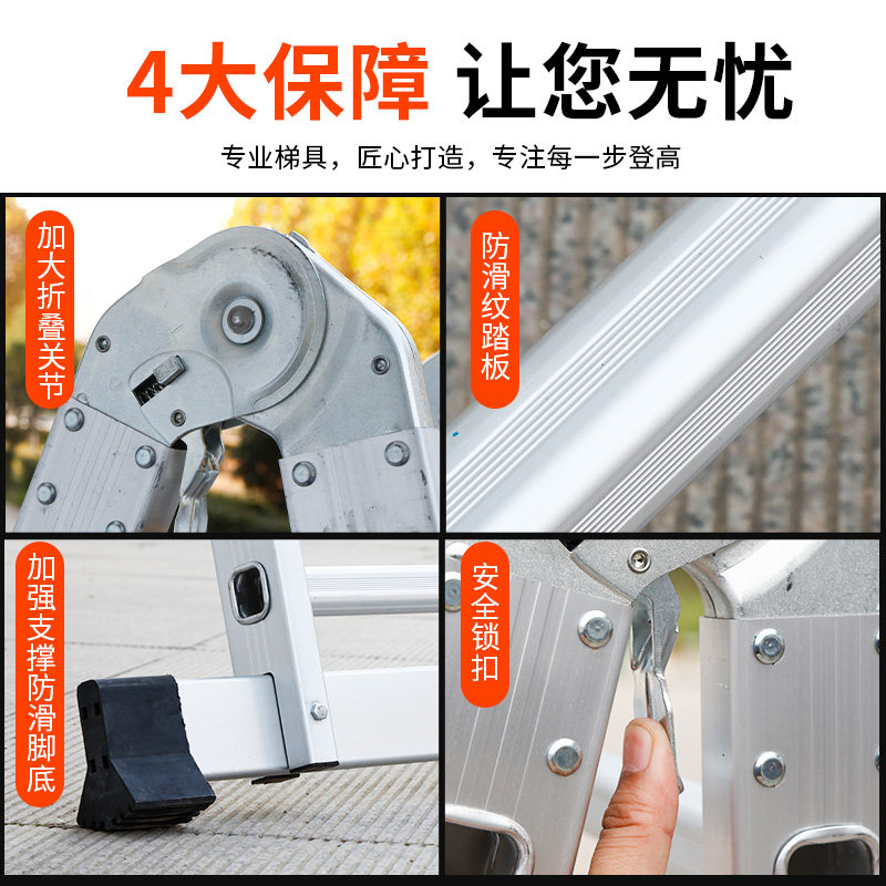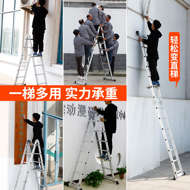 Aluminum alloy Dual-purpose ladder Punching Man Character Ladder Home Engineering Terra Loft Double Ladder Telescopic Single Straight Folding Ladder