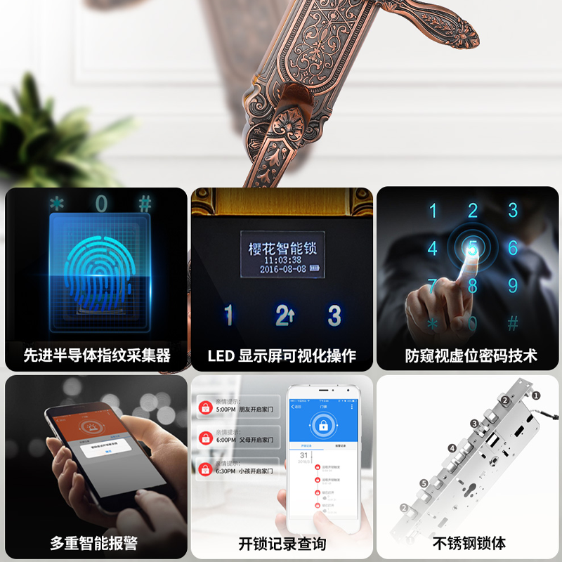 Cherry Blossom Smart Lock 8686 Fingerprint Password Security Door Villa Double Switch Gate Sliding Cover Electronic Door Lock Remote Control