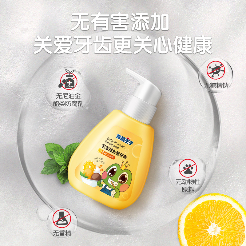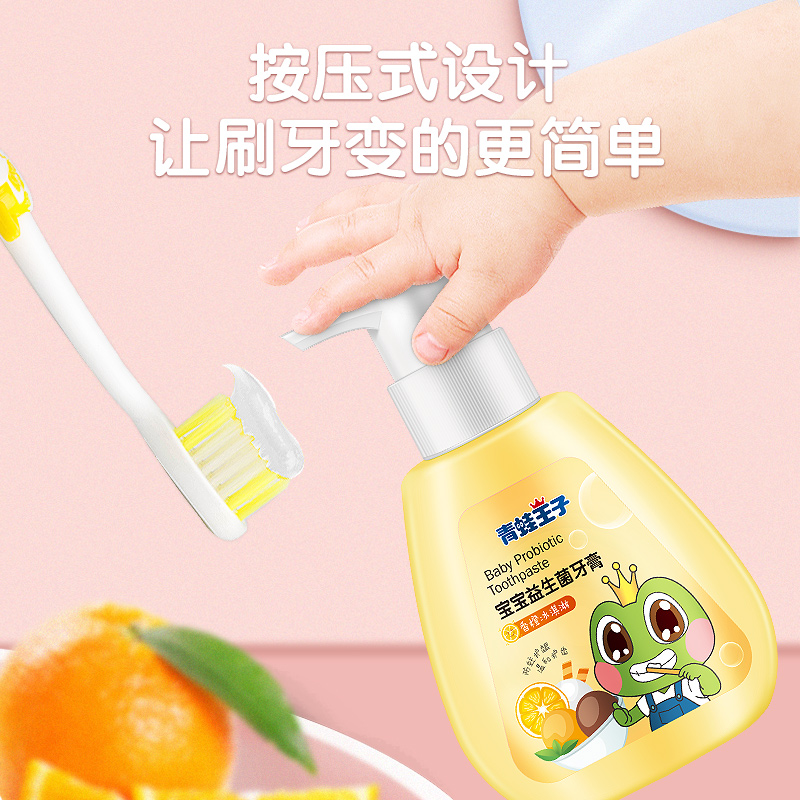 Frog Prince children's toothpaste 3 a 12-year-old baby low fluoride swallowable probiotics Primary school children push-on