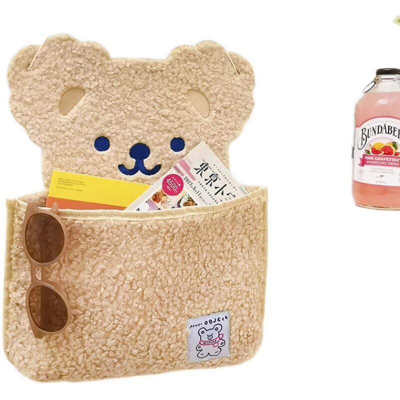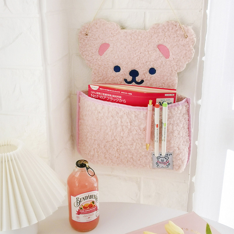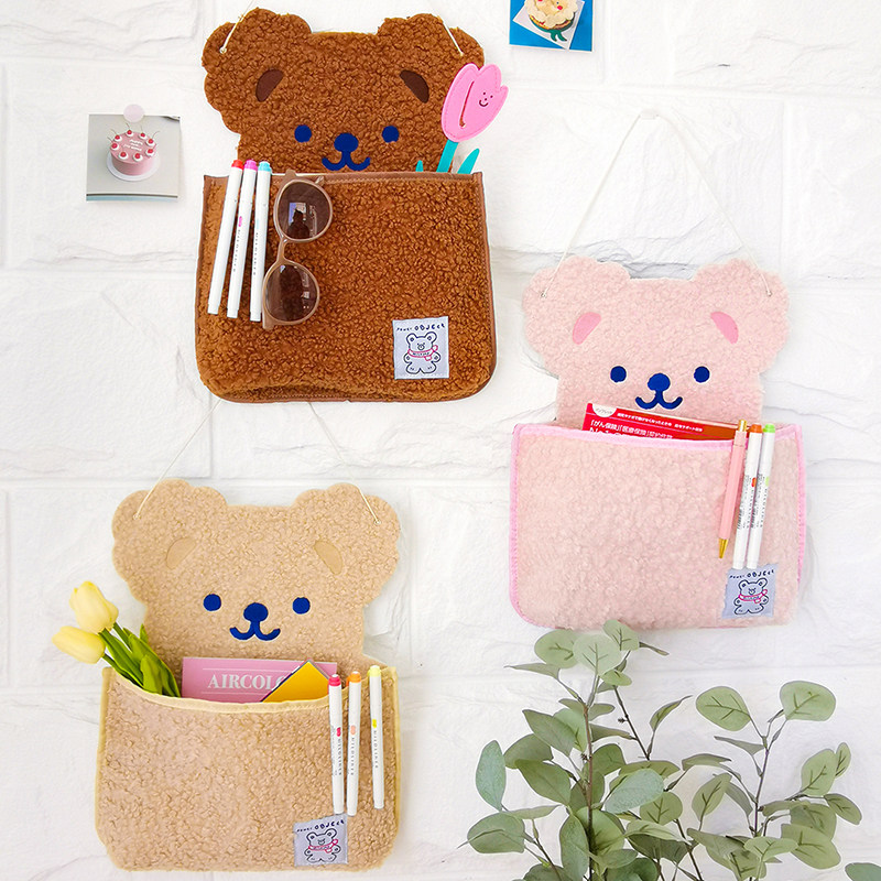 milkjoy plush small bear containing hanging bag mobile phone stationery wall-mounted collection pocket cute cartoon wall decoration bag-Taobao