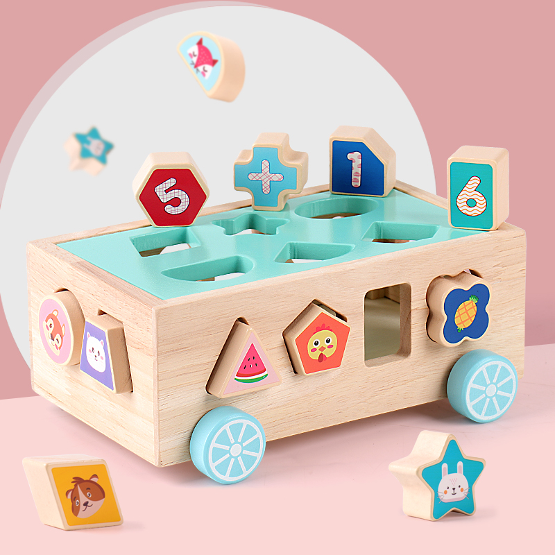 Digital Shape Shape Cart Oak Wood 17 Holes Building Blocks Intelligence Box Pink 18 Holes Animal Intelligence Box Cart Macaron 18 Holes Intellect Box