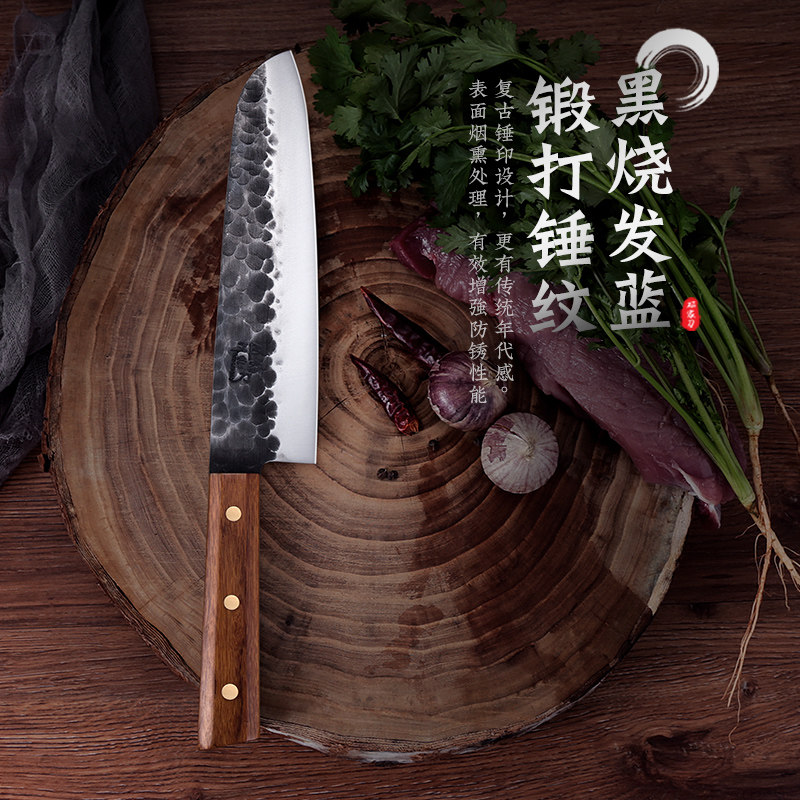 Mountain city blacksmith Deng family style Japanese and Western Sande knife kitchen chef cooking kitchen knife knife cutting meat forging kitchen knife forging