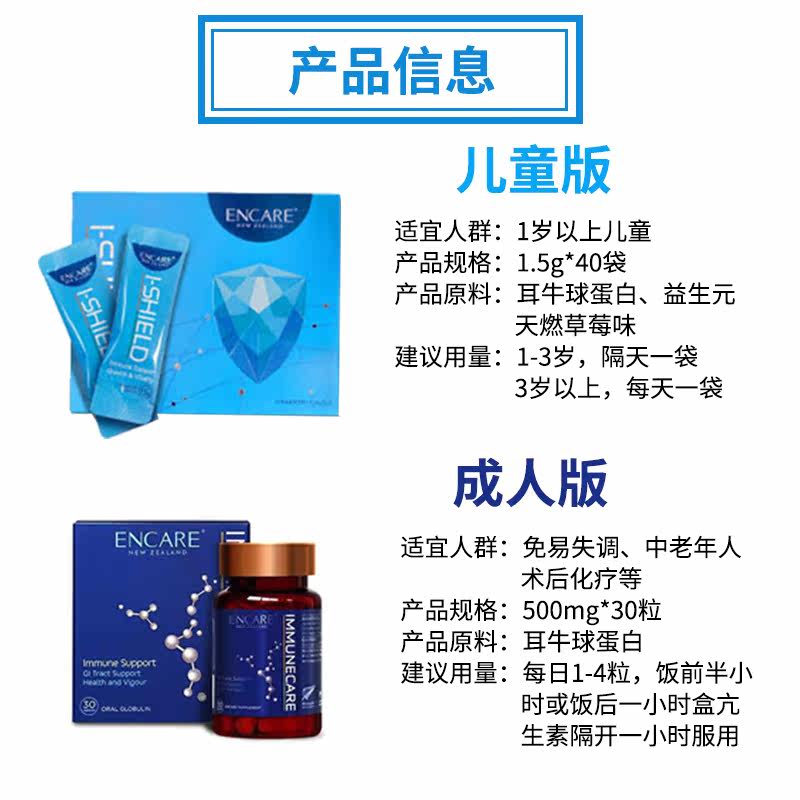 New Zealand imports ENCARE oral active ear cow globulin powder immune nutrition capsule Children's Edition Adult Edition