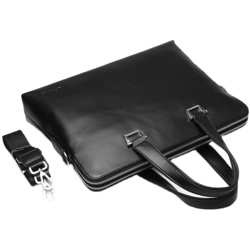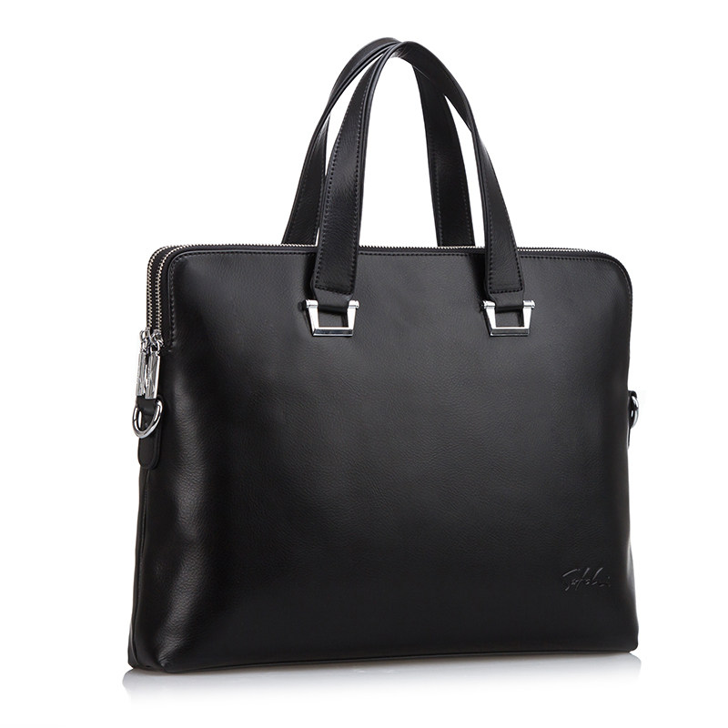 Shachi men's bag handbag business leather shoulder bag horizontal section men's leather double zipper computer briefcase bag trendy