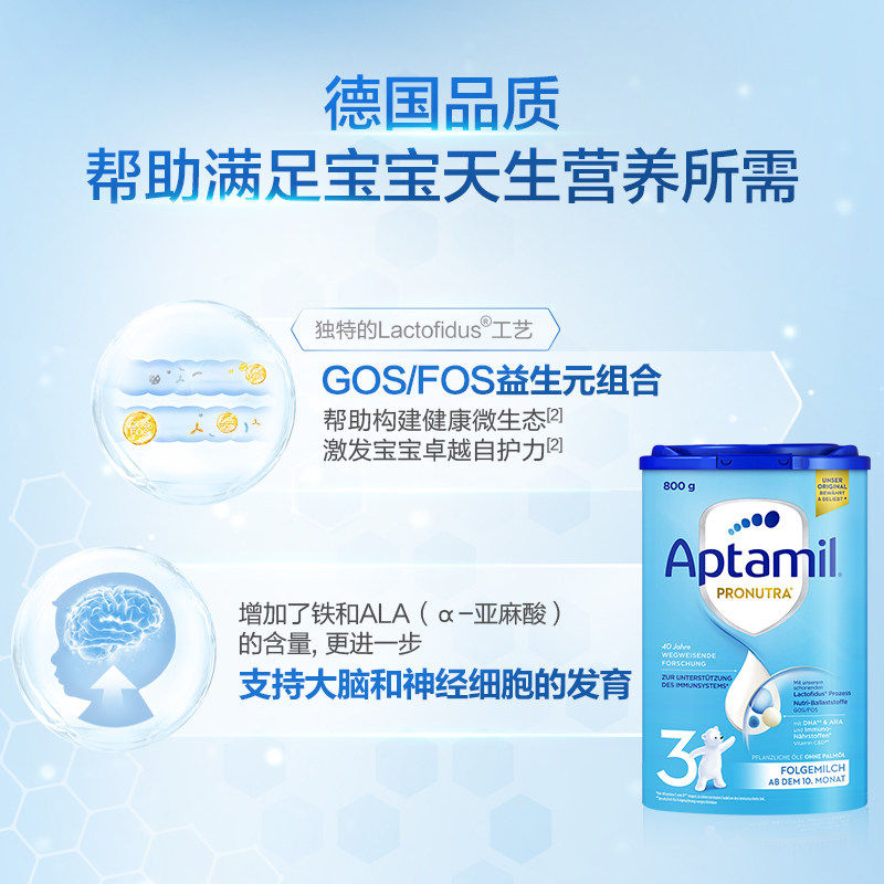 German Aptamil 3-segment classic version baby infant imported formula milk powder 3-segment easy music can 800g