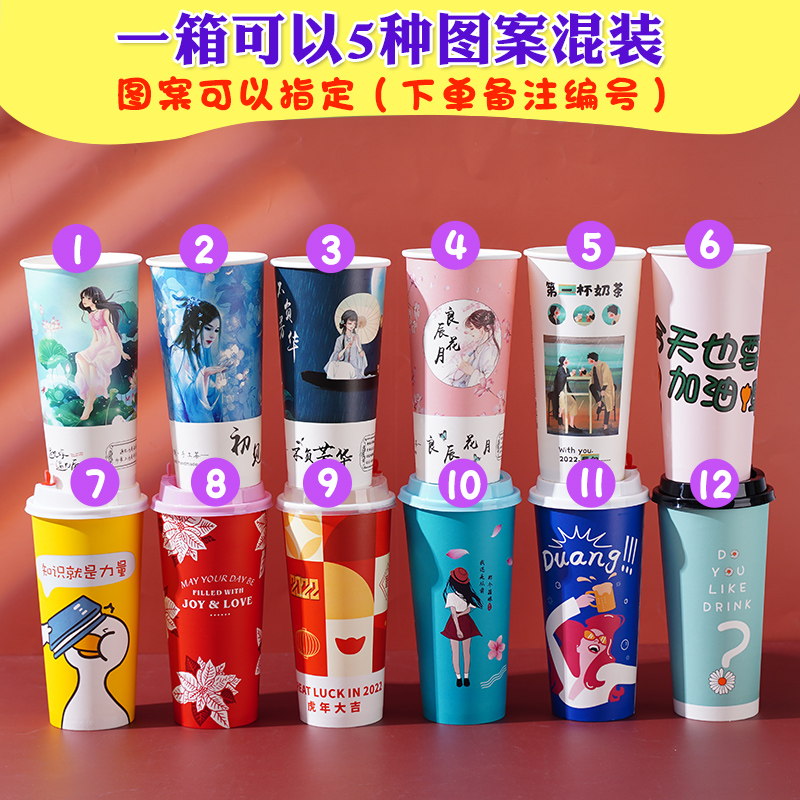 90 caliber disposable milk tea cup can be sealed hot drink net red with lid commercial 500 700ml paper cup customization
