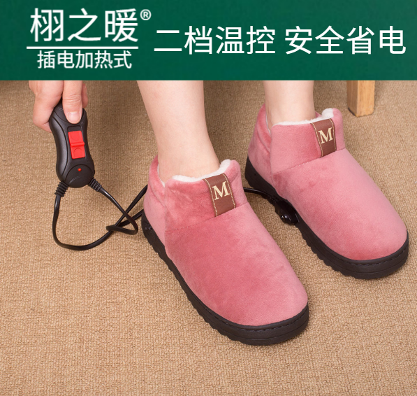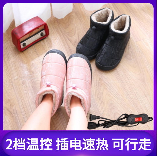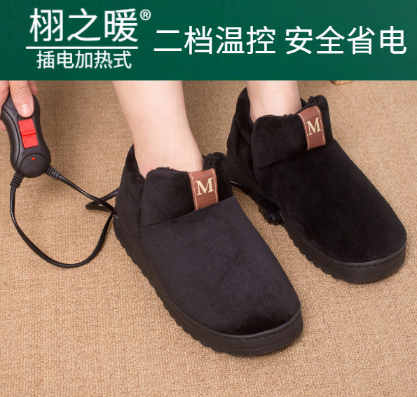 Foot warmer plug-in electric warm shoes charging can walk female and male heating plush warm shoes home office foot warmer
