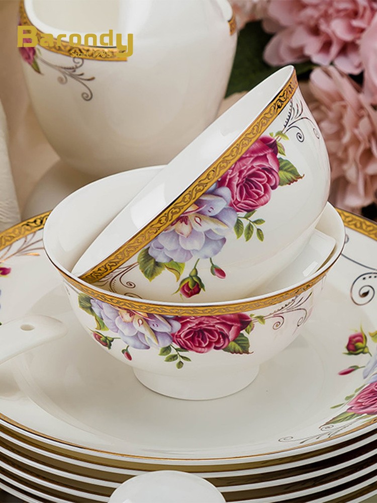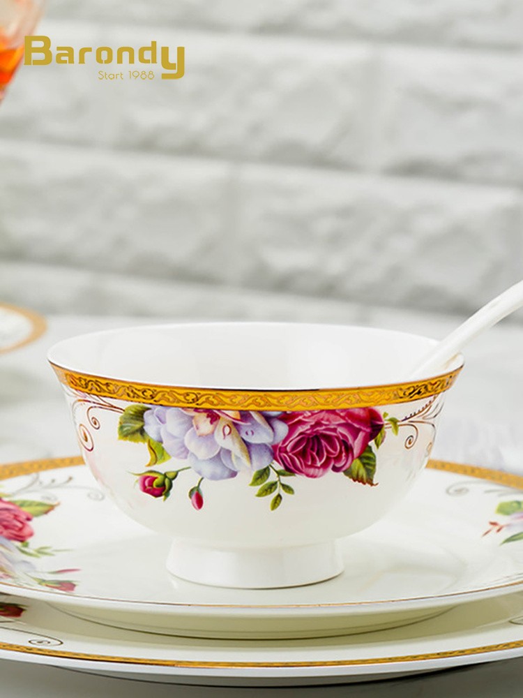 Barony Light Luxury Bone China Tableware Bowl Home Chinese Ceramic Plate Bowl Chopsticks Bowl Set Wedding Gift