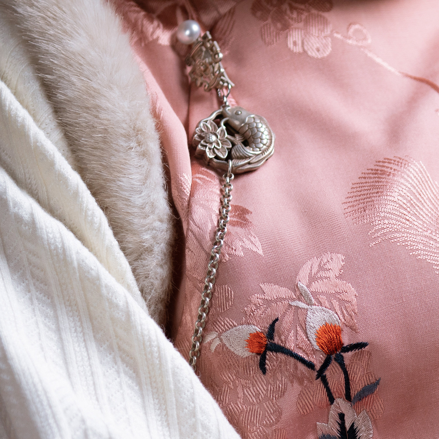 Yellow Fish in Spring and Autumn China Winter Chinese Winter Chinese Wind Bangrobe Retro-style Jewelry Brast Needle silver-pressured flaped hanging