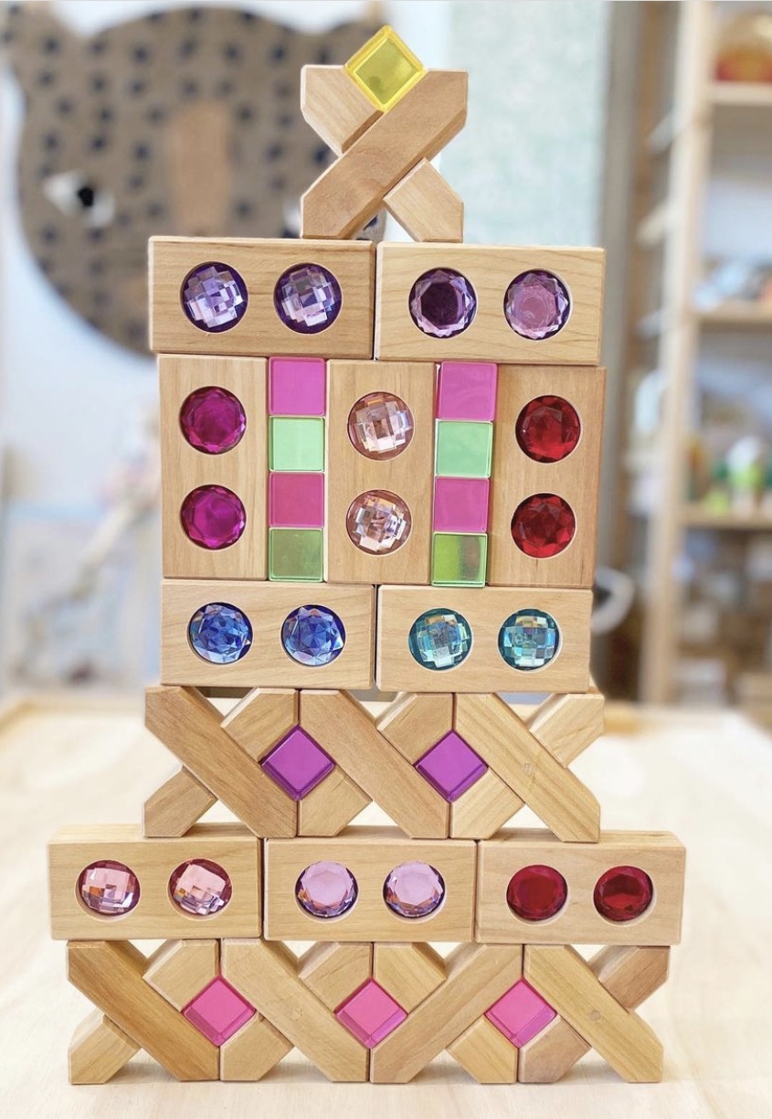 Montessori Reggio early education Light and shadow translucent gem building blocks Baby Creative solid wood Dusyma