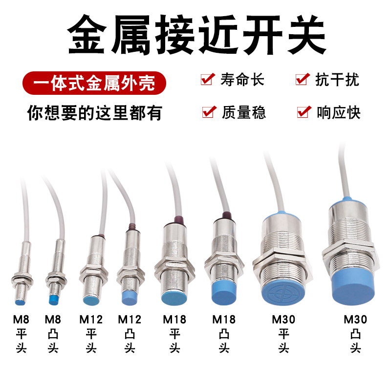 8MM12MM inductive proximity switch sensor NPN normally open three-wire DC 24v metal induction PNP normally closed