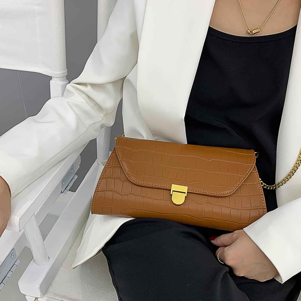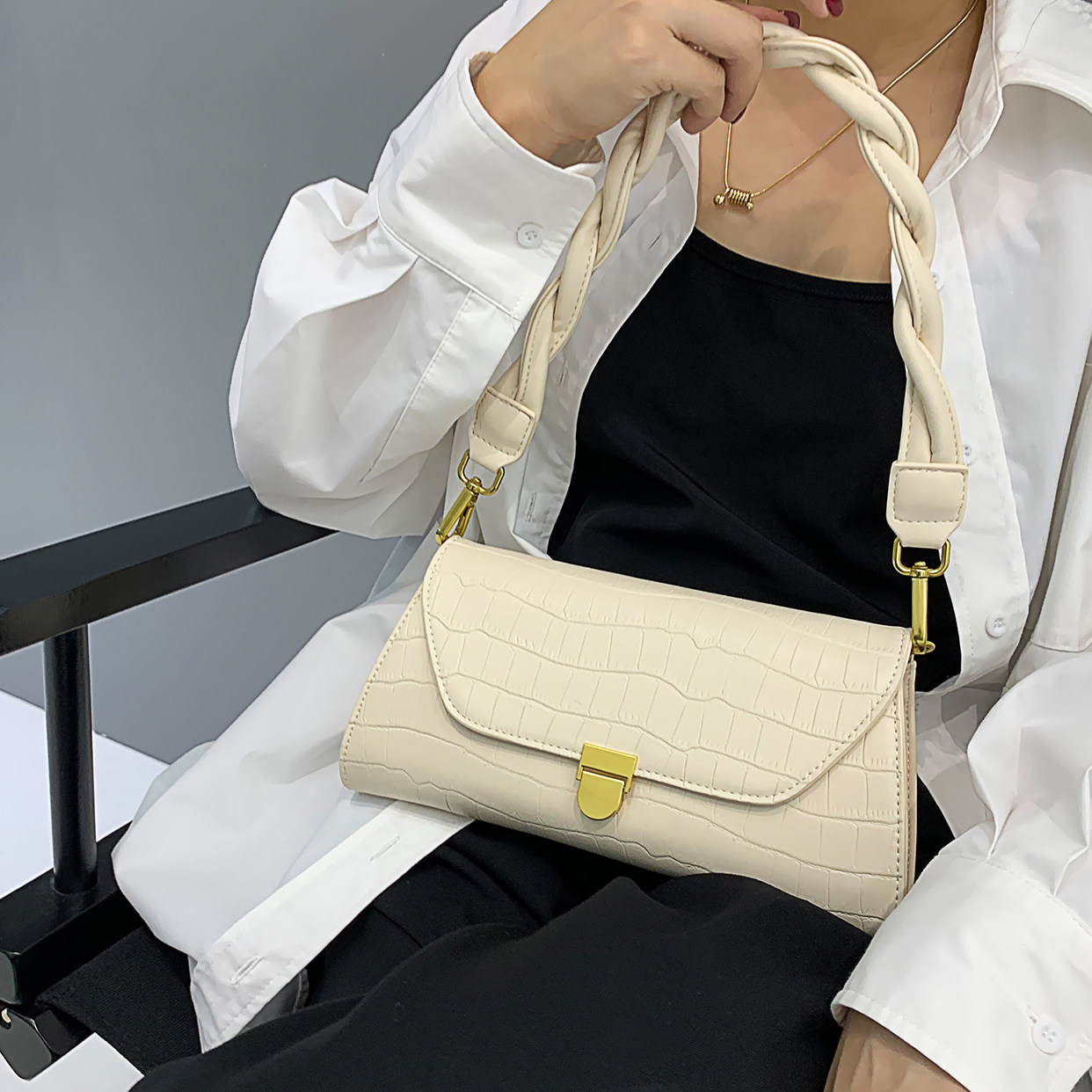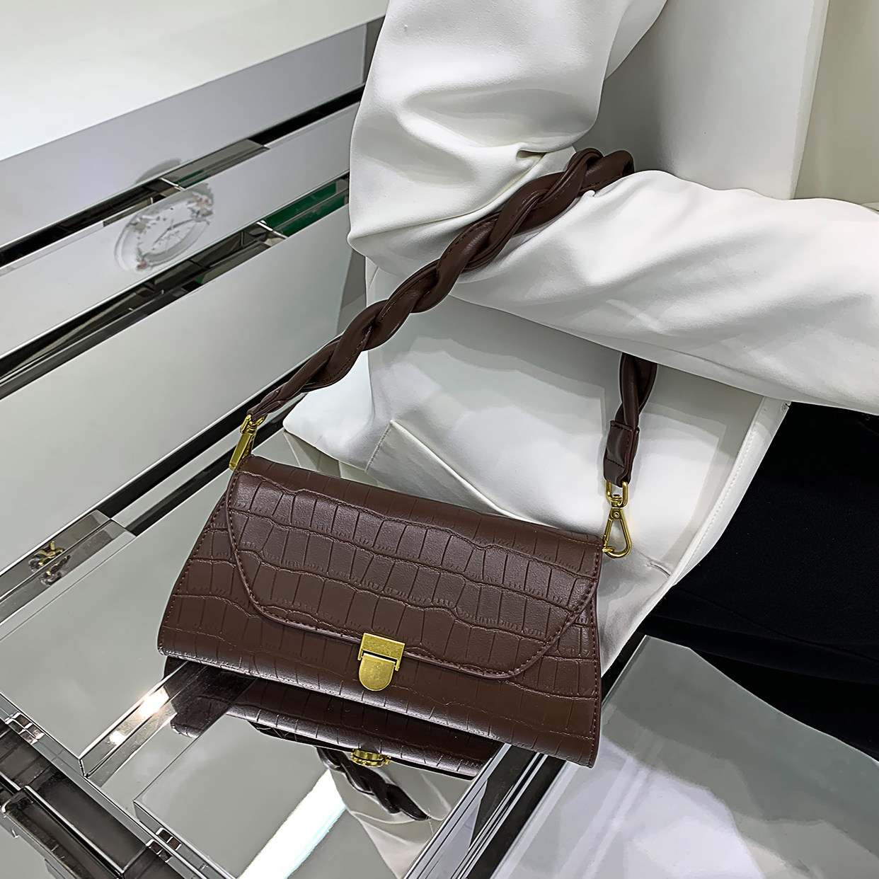 Autumn lady Bag Pack Spring Summer Light Extravagant Crocodile Line Woven Shoulder Strap Faron axillary Bag Bag Bag Fashion Single Shoulder Diagonal Satchel Bag