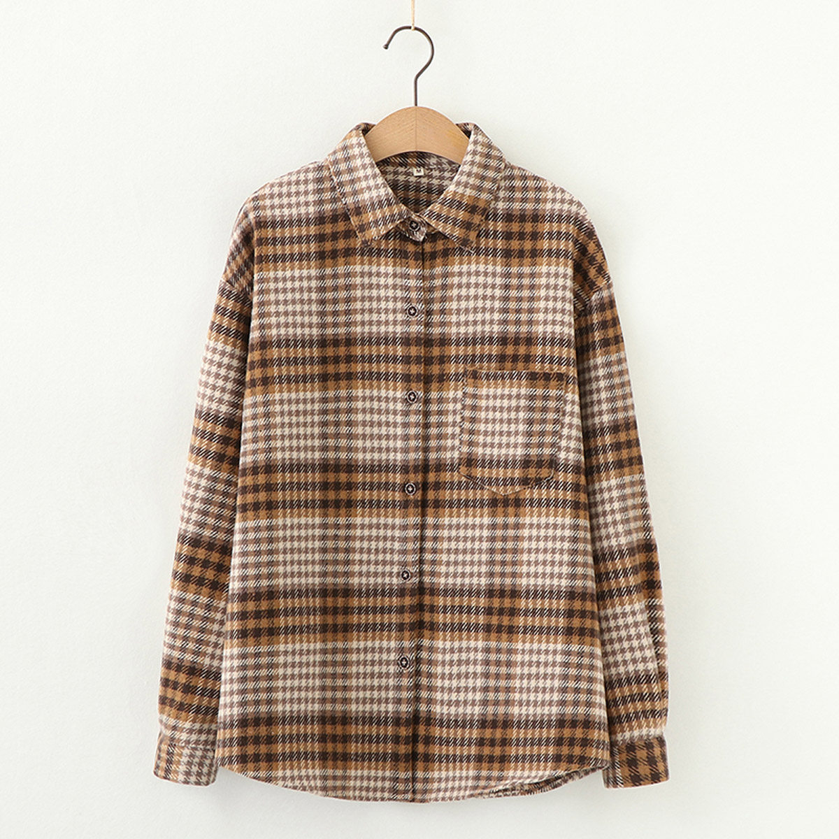Shirt Woman 2022 Spring jacket vintage fur Plaid Shirt Harbor Taste Korean Version Loose thickened Milled Blouse Spring