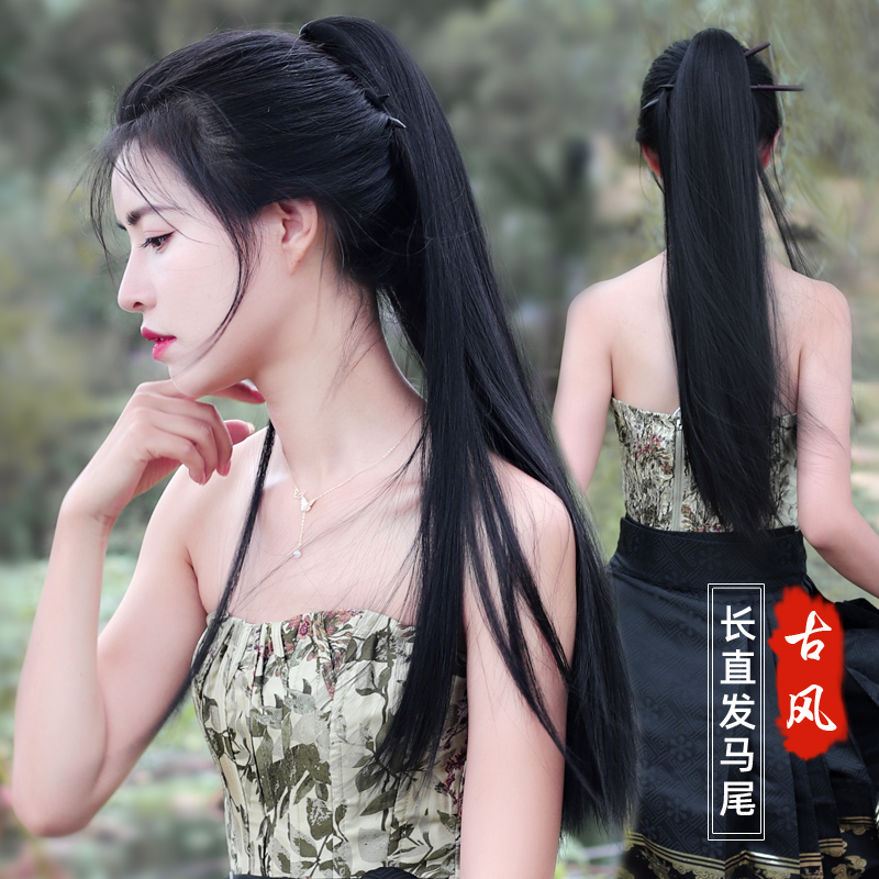 Ancient Wind Wig Ponytail Grip Hairpin (s) Hairpin COS film and TV Ancient clothing High horsetail Female long straight hair braid hair tail emulated hair-Taobao