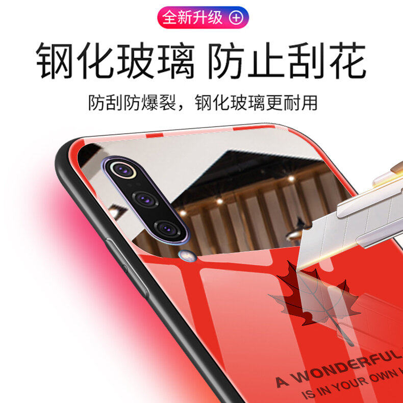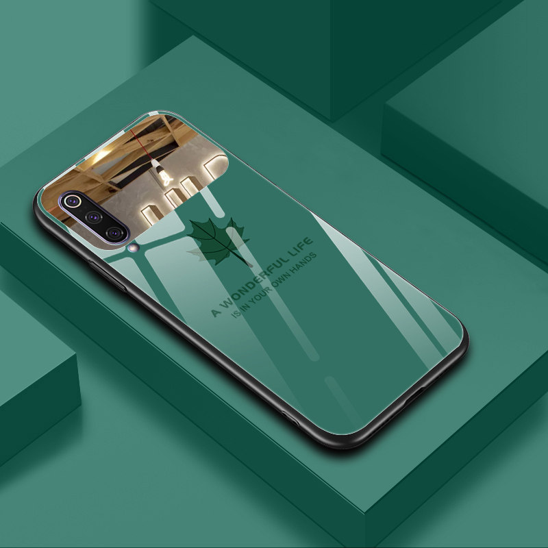 Suitable for Xiaomi 9 mobile phone protection shell new minimalist maple leaf mirror glass silicone full,Xiaomi 9 in the