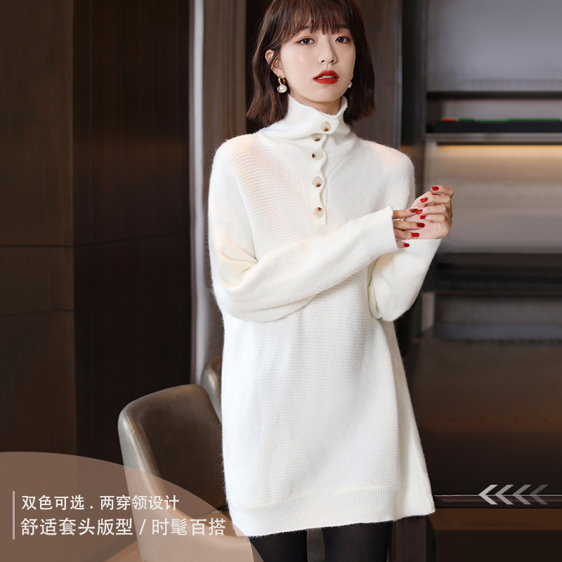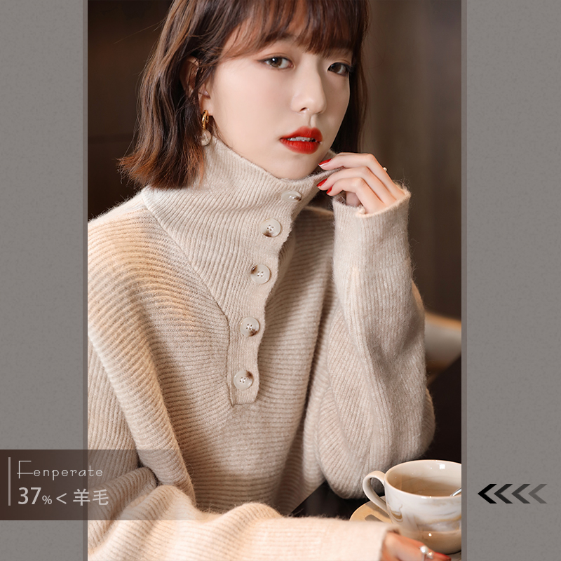 FENPERATE high collar sweater women's spring autumn season outside wearing wool cover head Korean version loose with long version of wool top