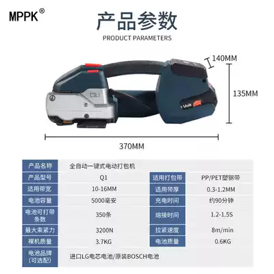 MPPK Q1 one-button electric plastic steel belt baler PP PET plastic belt automatic hot melt baler handheld buckle free strapping packaging machine