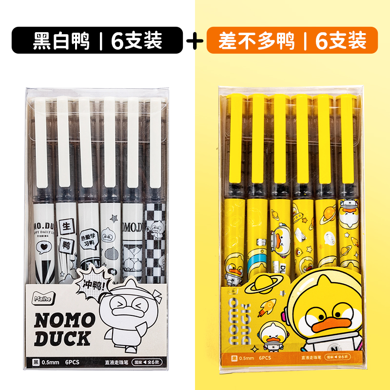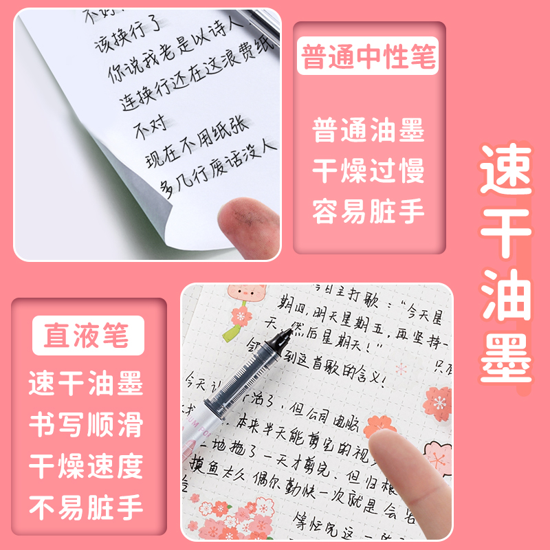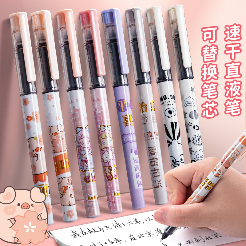 Straight liquid water-based ballpoint pen black neutral pen quick-drying students with straight liquid pen set notes special hand account needle tube pen