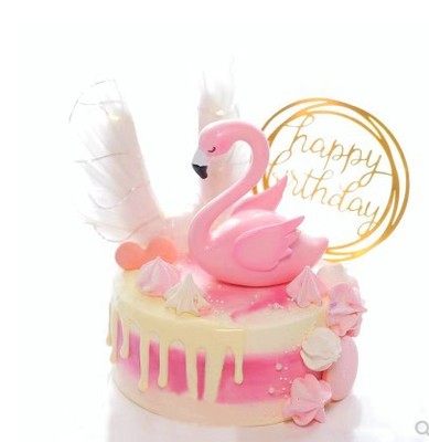 Flamingo swan cake decoration ornaments gold-plated silver crown swan party decoration plug-in wedding confession flag