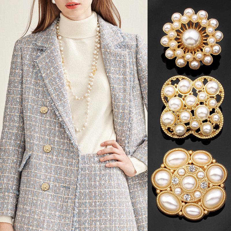 Metal button Fur Coats Sweater Coat Jacket Woman Upscale 100 Hitch Pearls Small Scent Wind and Fancy Big-size Big Little