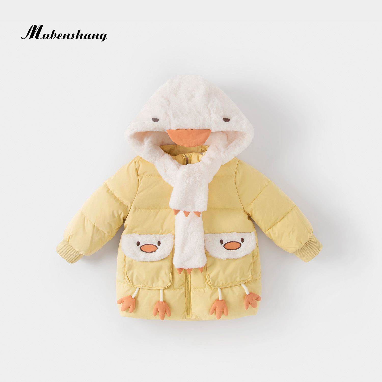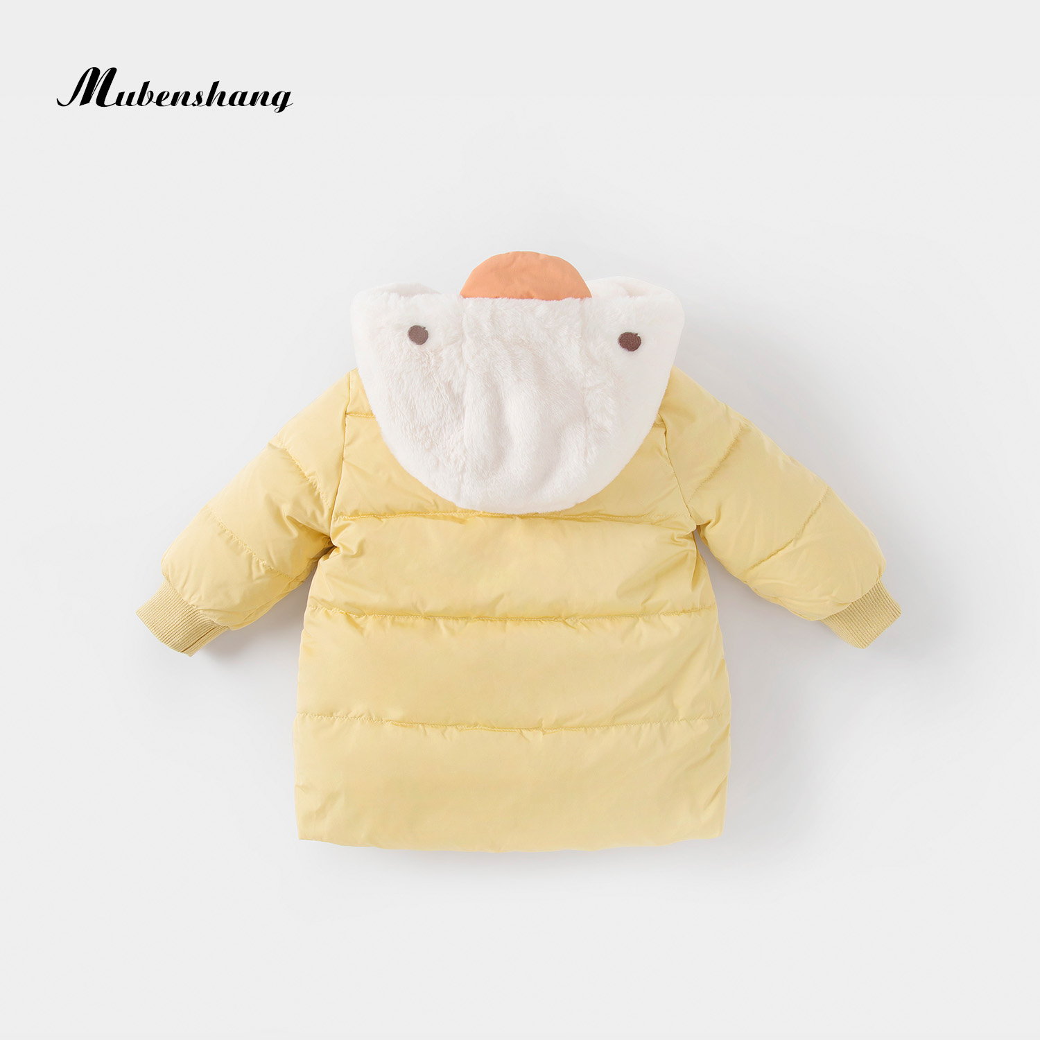 Mubenshang baby down jacket girls children's medium-length version yellow cute duck 2022 new children's winter clothes