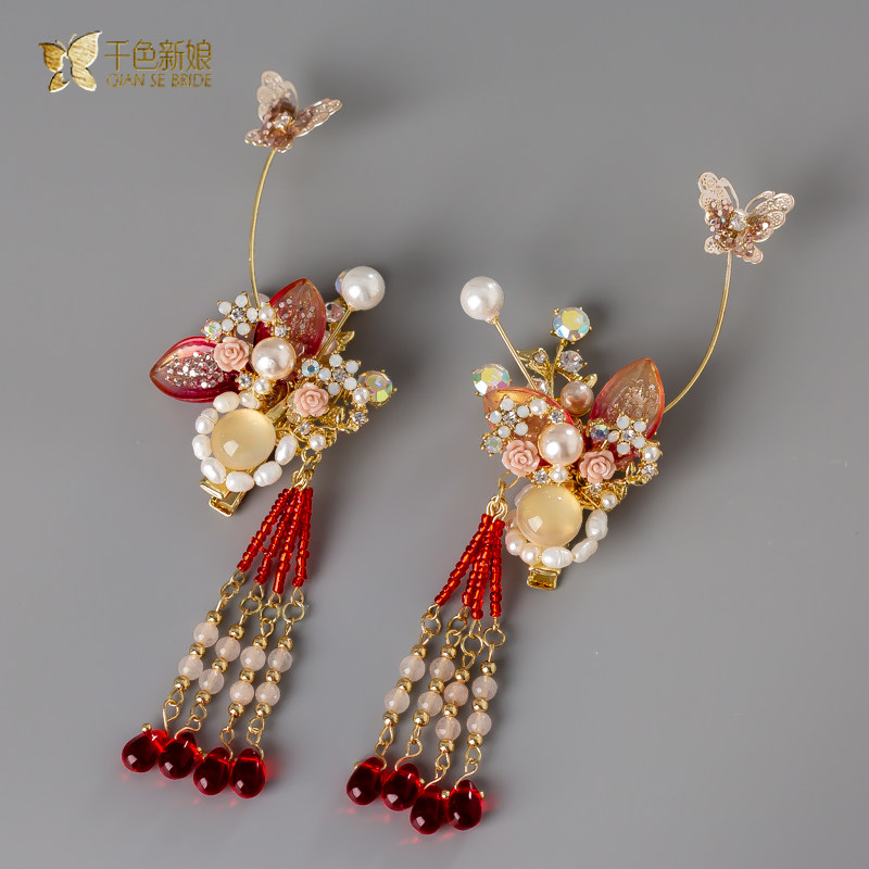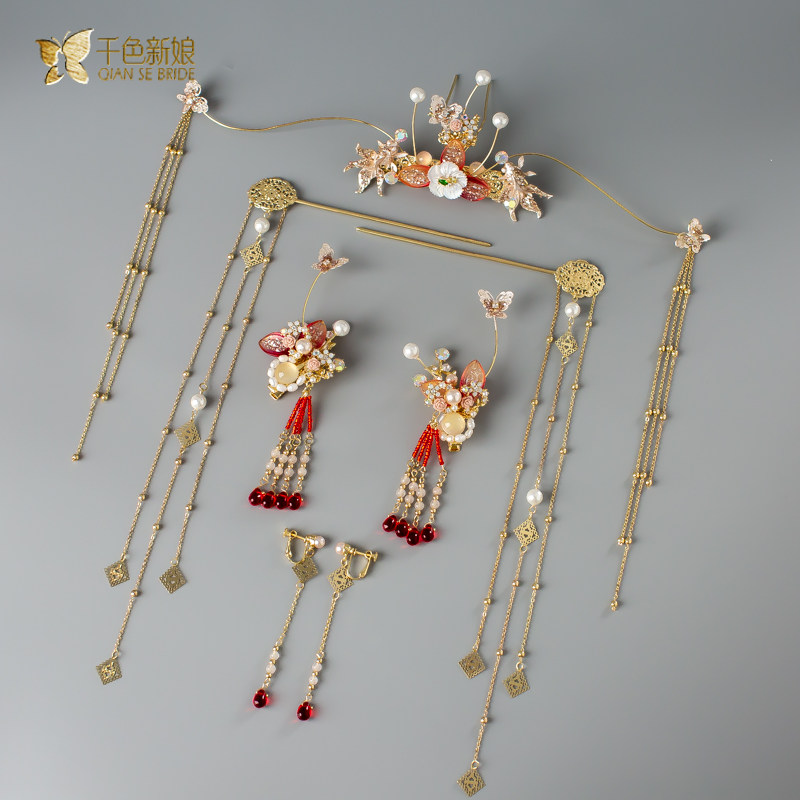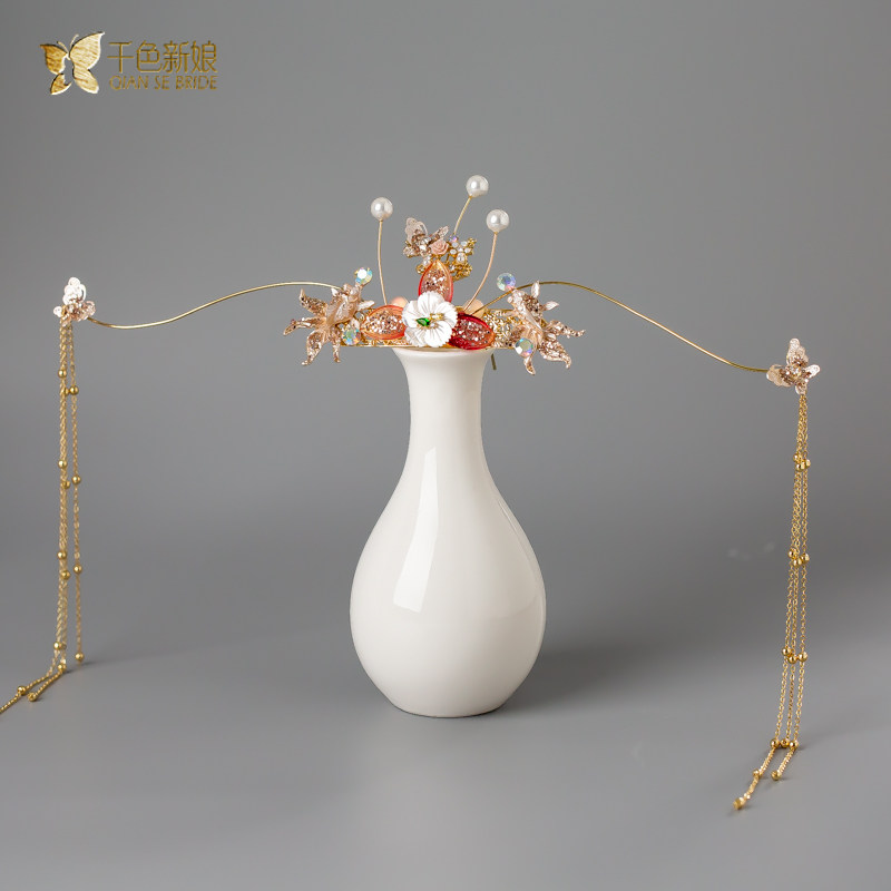 Bridal headwear 2022 new ancient dress Chinese style show and dragon and phoenix hanging hair accessories flow Sureverence dresses Tongling