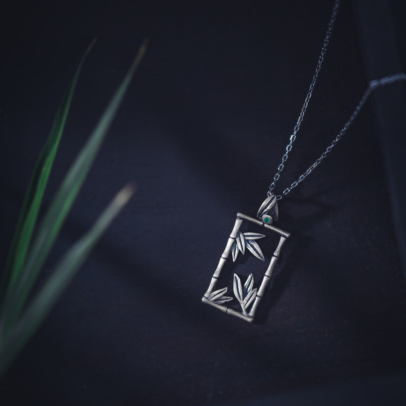 Small Window Humor 925 pure silver Bamboo retro made of old necklace New Chinese lock bone chain