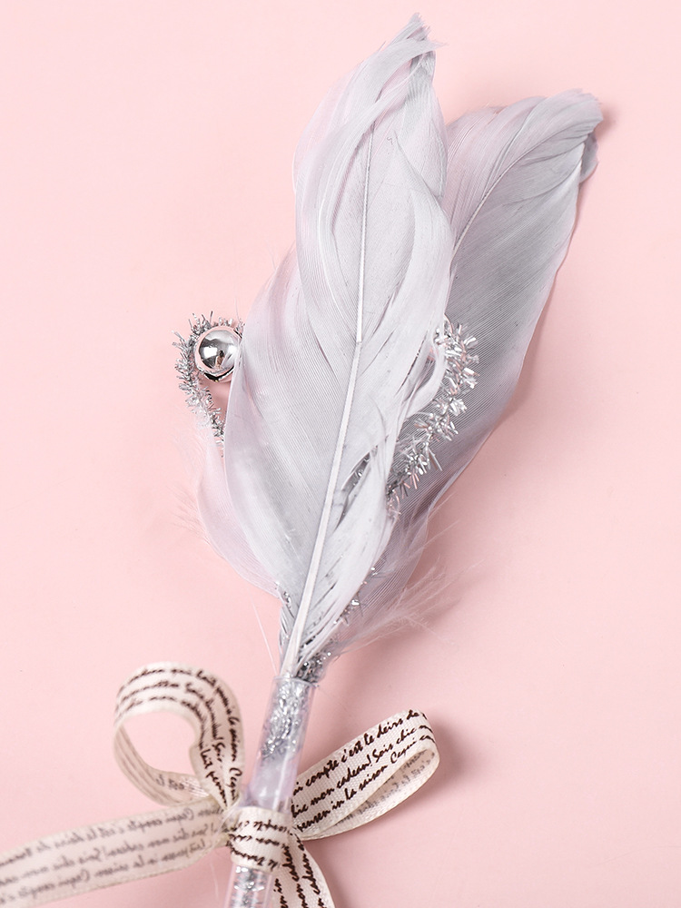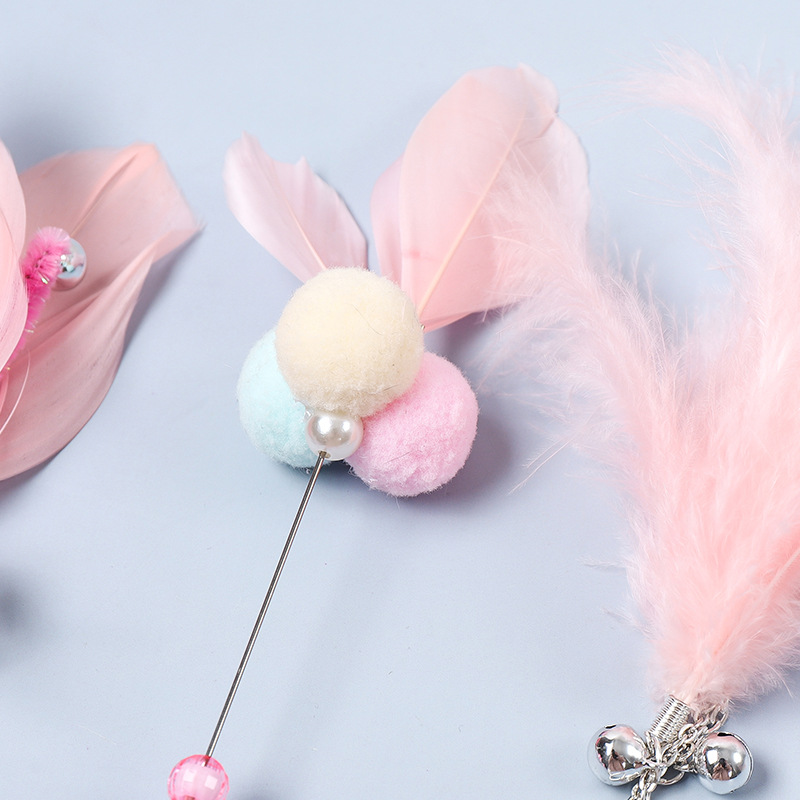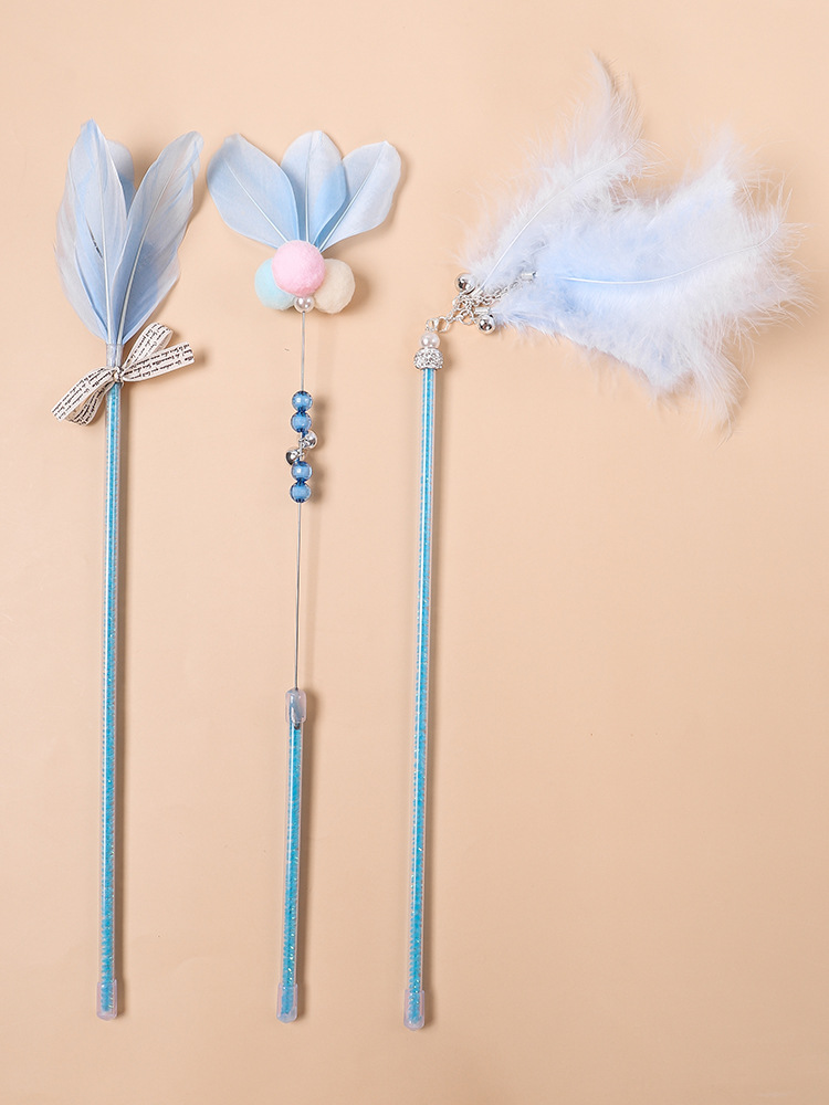 (White Meow) Fairy Teasing Cat Sticks Three Sets Of Feather Bells Handmade Interactive Toys Puzzle-resistant bite