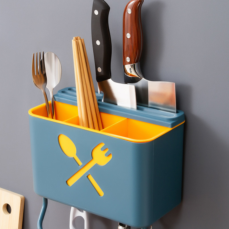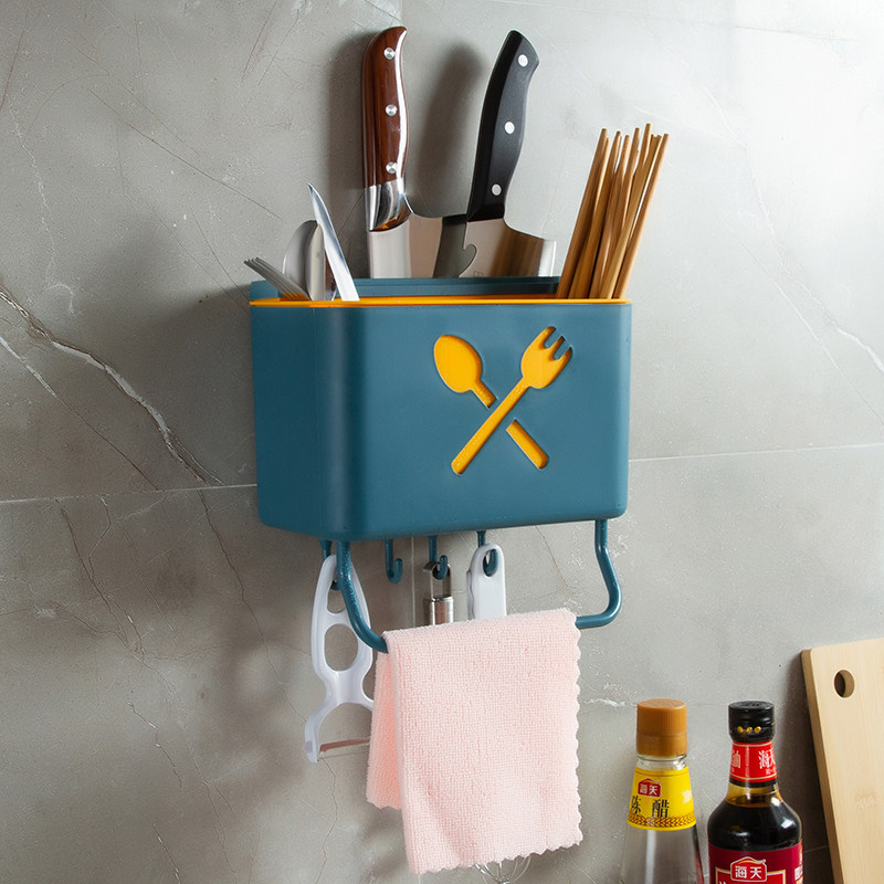 Non-perforated knife holder, chopsticks cage, integrated wall-mounted household dish cutter holder, multi-functional combination rack