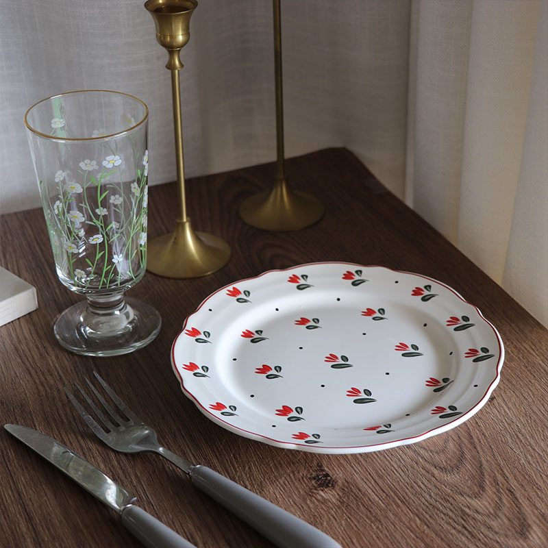 Blue edge English Little Rose Ceramic Disk 8 inch black Dot red side plate 8 inch pink side ceramic plate 8 inch yellow side ceramic plate 8 inch blue side ceramic plate 8 inch hand-drawn crayon porcelain