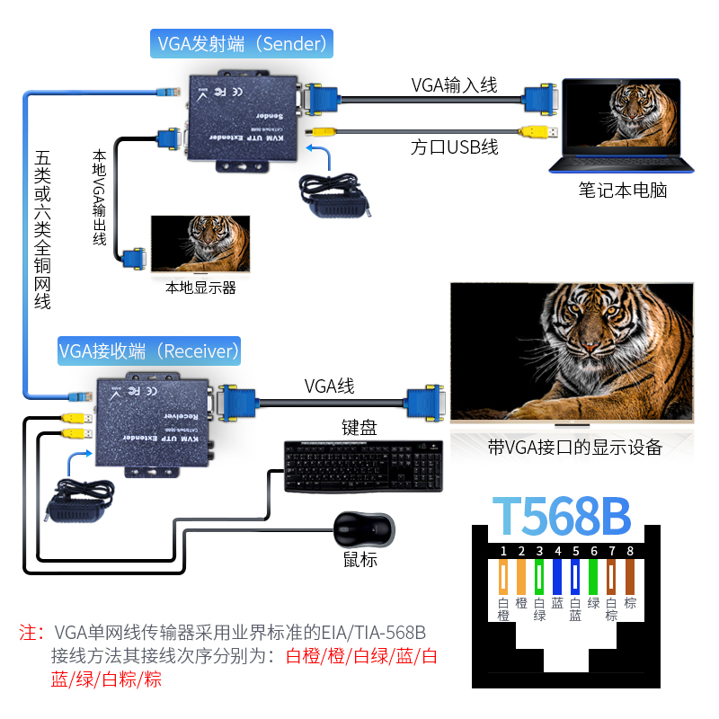 KVM extender VGA with USB port to RJ45 network cable signal transmission with local loop out 100 200 300 meters