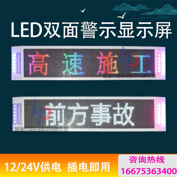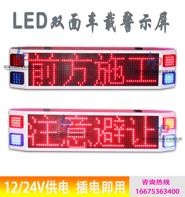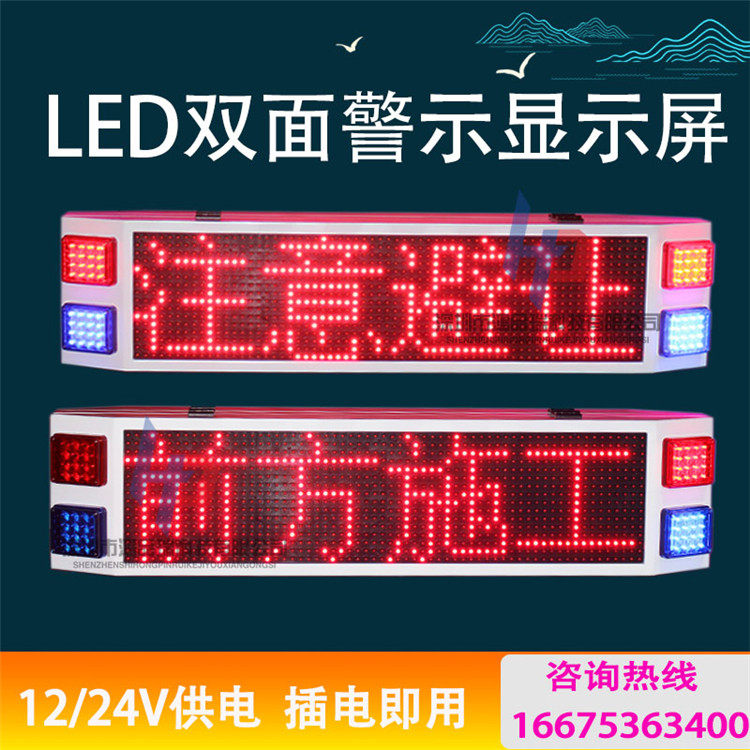 High-speed construction vehicle warning led screen police protection linkage pickup truck LED double-sided roof 12V electronic display