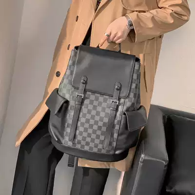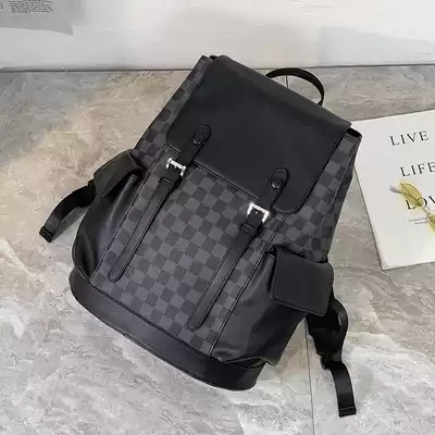Shoulder Bag Men's European and American fashion plaid bag Tide brand large capacity travel bag leisure student school bag computer bag