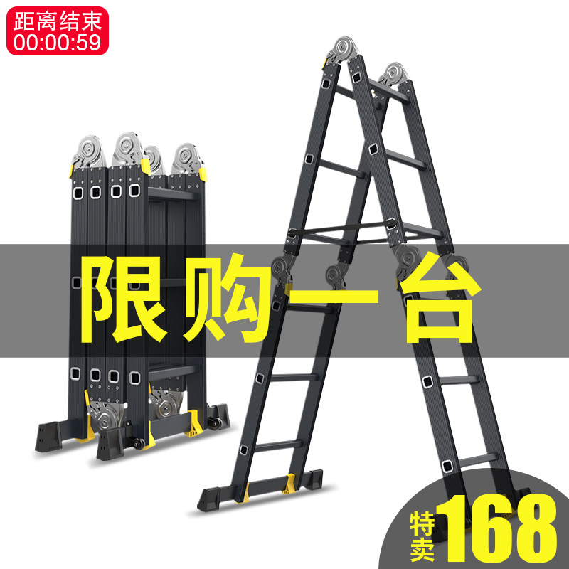 Multi-functional folding ladder aluminum alloy thicker herringbone ladder Home ladder Telescopic ladder Lifting straight ladder Portable engineering ladder
