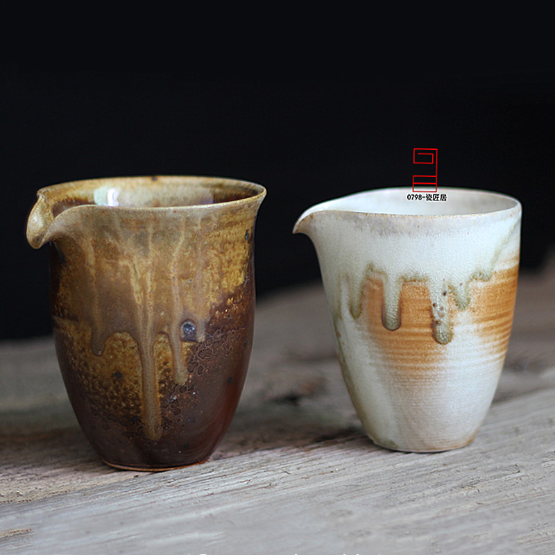 Chinese-style Jingdezhen ceramic pine wood fire fair cup unglazed natural falling ash tea set even tea cup kiln change tea set