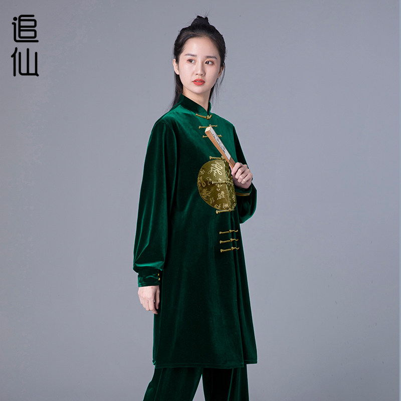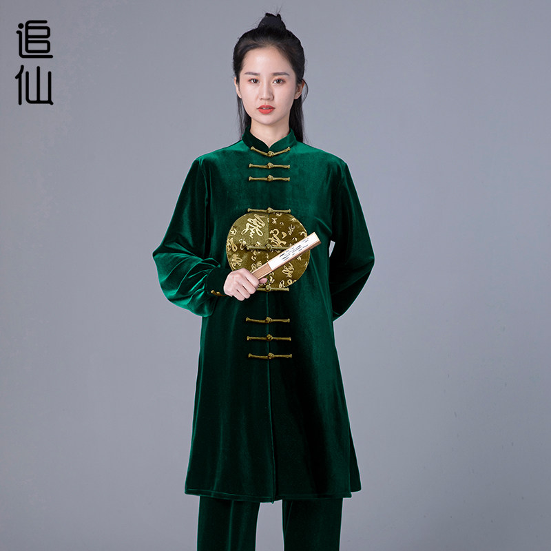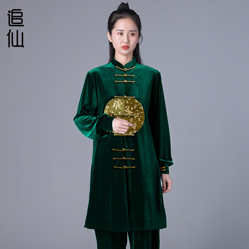 Chasing fairy autumn and winter Tai Chi uniforms new thickened South Korean suede morning training performance Costume Training Performance Suit-Taobao