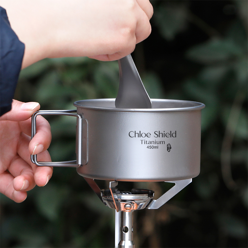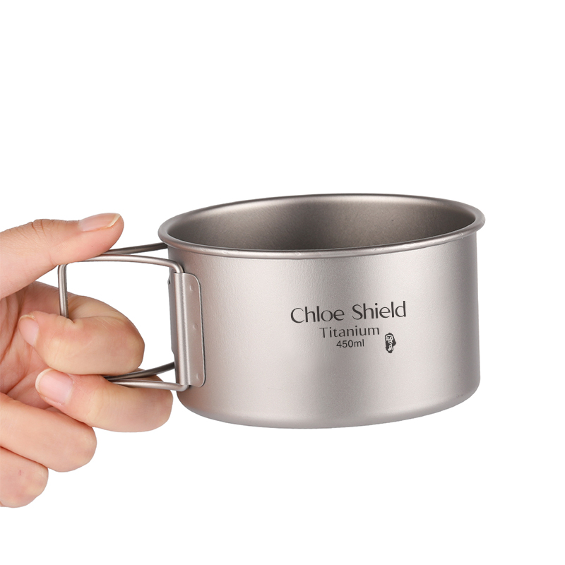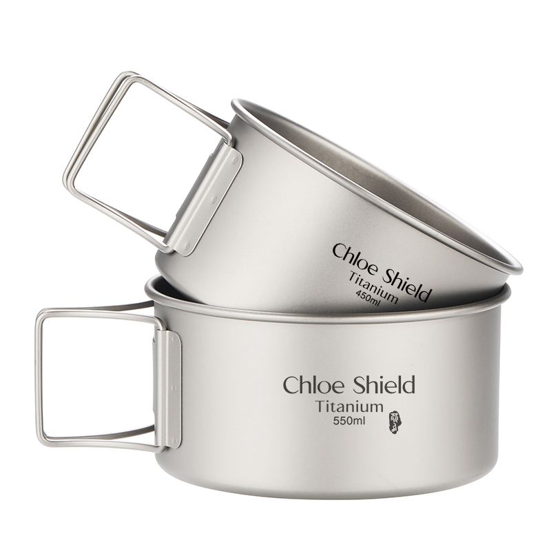 Coe shield outdoor camping pure titanium single portable folding handle single layer titanium bowl combination set Bowl picnic Bowl