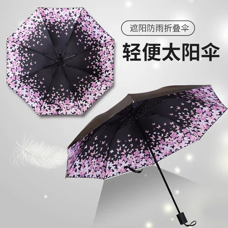 Folded barometer students in adult male and female in short three folded umbrella shade sun protection compact and portable miniumbrella