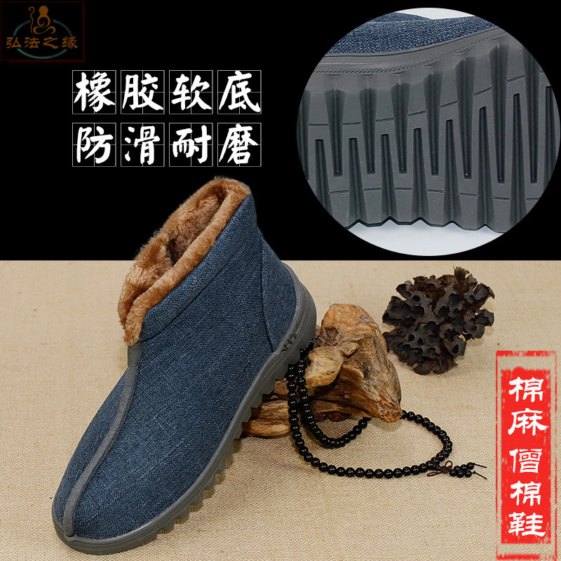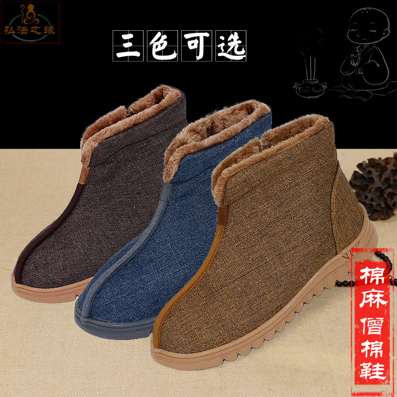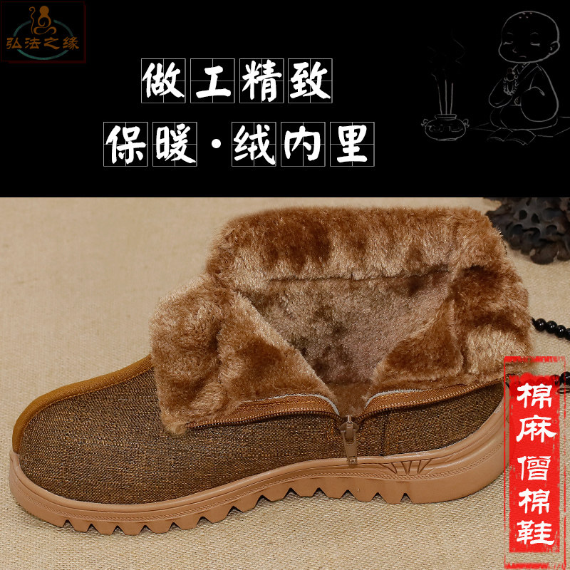 Huiwu monk shoes winter cotton shoes thickened and velvet warm monk nun monk shoes plush cotton boots for men and women