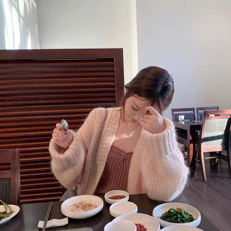 Saucer Coarse Line Sweater Jacket Woman Winter Thickening 2020 New Korean version loose Lazy Fashion Short knitted cardiovert
