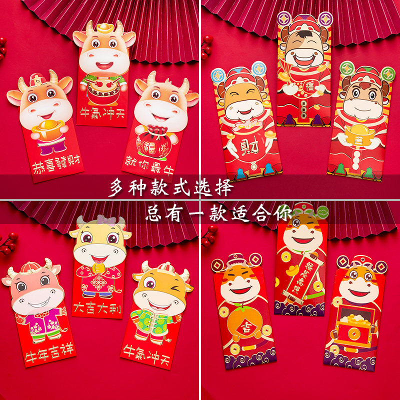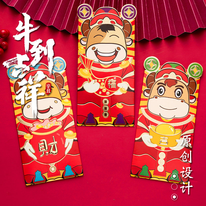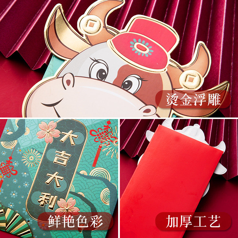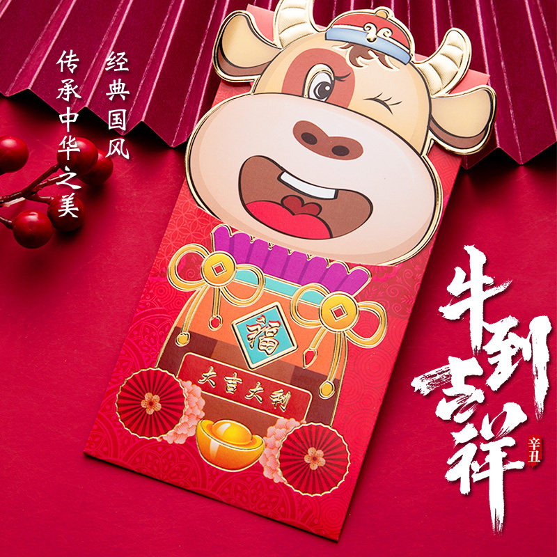 2021 Year of the Ox red envelope bag New Year Zodiac Cute cartoon personality creative bonus is a universal New Year pressure year bag