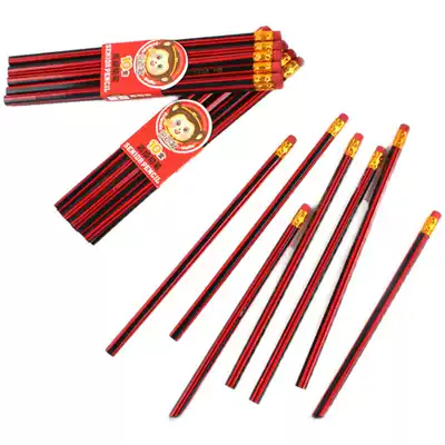 Childhood classic student pencil drawing pencil black core black bar HB children wooden pole pencil with rubber 80 Post stationery